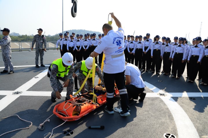 โดยมี ว่าที่ นาวาเอก ณัฐวุฒิ สัจจะมโน ผู้บังคับการเรือหลวงช้าง ให้การต้อนรับ และ นาวาโท กษิเดช คุปตะพันธ์ พร้อมทั้งกำลังพลสายแพทย์เรือหลวงช้าง เป็นวิทยากร